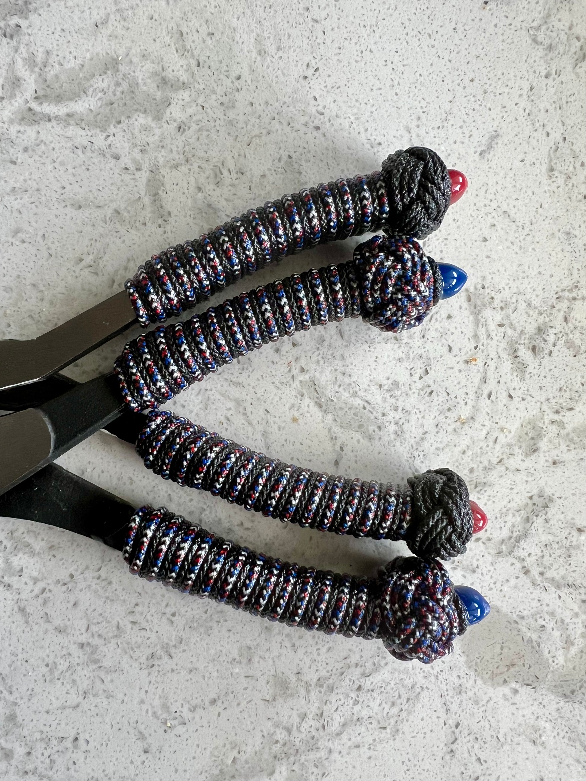 8" Doyle Duckbill and 7" Quinn Cutter. Custom wrapped pliers finished with a woggle knot. Coated wraps for added protection and durability. FREE SHIPPING to Continental USA