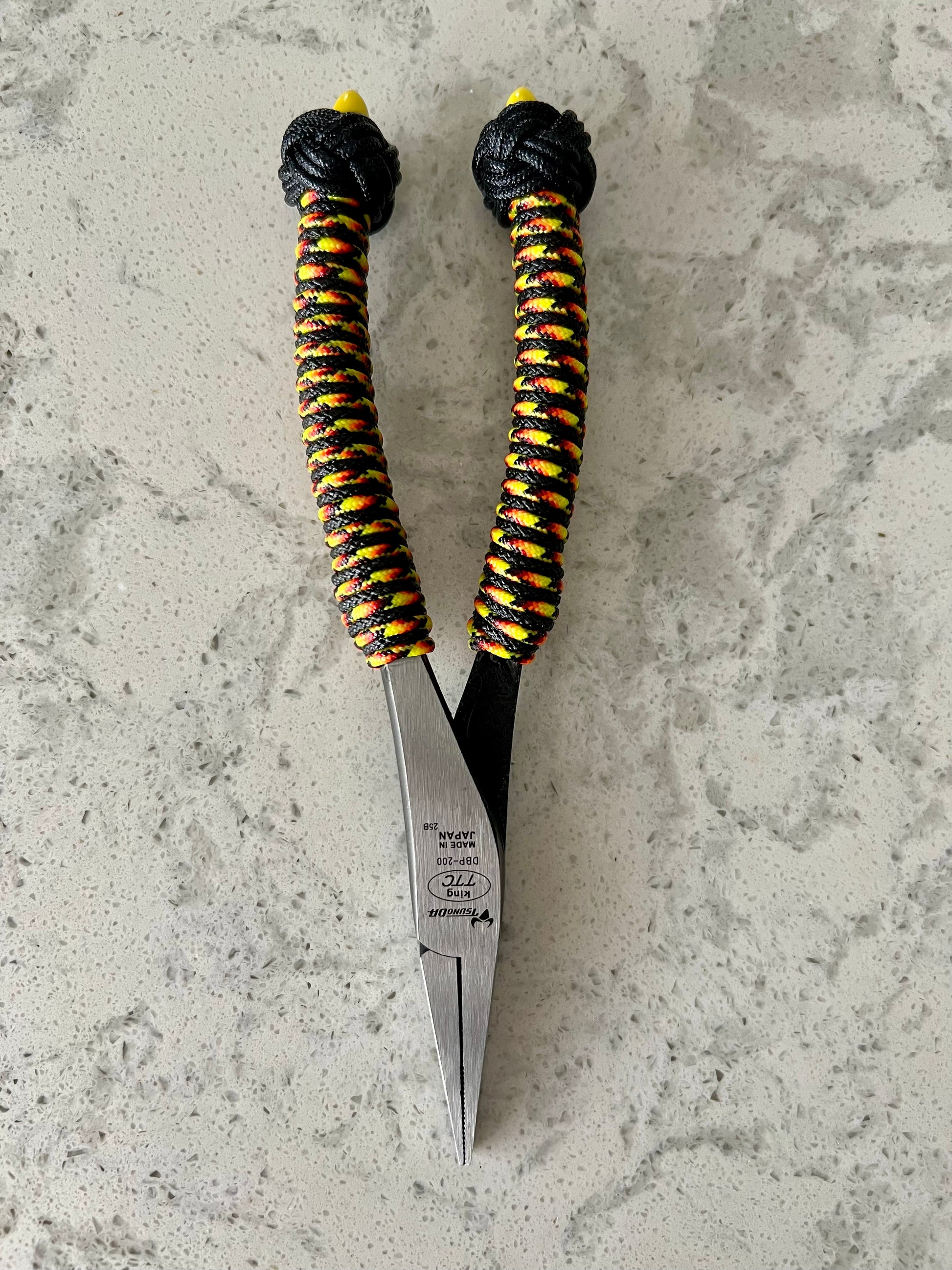 8" Duckbill and 7" Cutter by Tsunoda. Custom wrapped pliers finished with a woggle knot. Coated wraps for added protection and durability. FREE SHIPPING to Continental USA